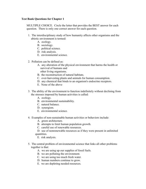 Download online ENVIRONMENTAL SCIENCE TEST BANK ANSWERS AND QUESTIONS PDF BookBoon